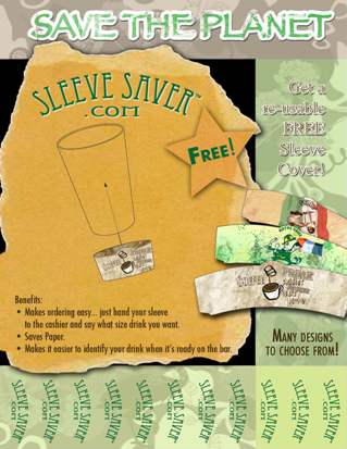 Spread the Word! If you like Sleeve Savers and think other people would too, will you do us a favor? Marketing is very expensive, so if you could print out this flyer (5MB .pdf) , cut the little tabs at the bottom with scissors, and then post this at your local coffee shop's community bulletin board, that would be very helpful! That way people will have a convenient way to remember our website address... they just tear-off one of the little tabs at the bottom. Also, if you'd like to let others know about our website by email, please use our email a friend feature. Let all of your coffee-loving friends know about us! |